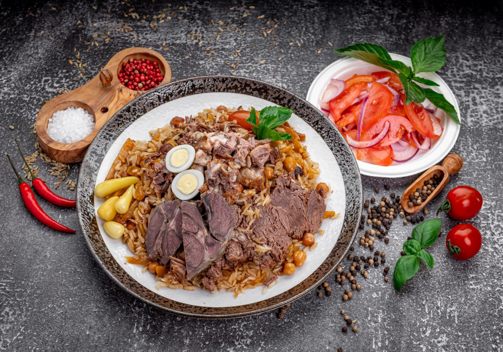 1Lamb, beef, rise, carrot, raisins, chickpeas