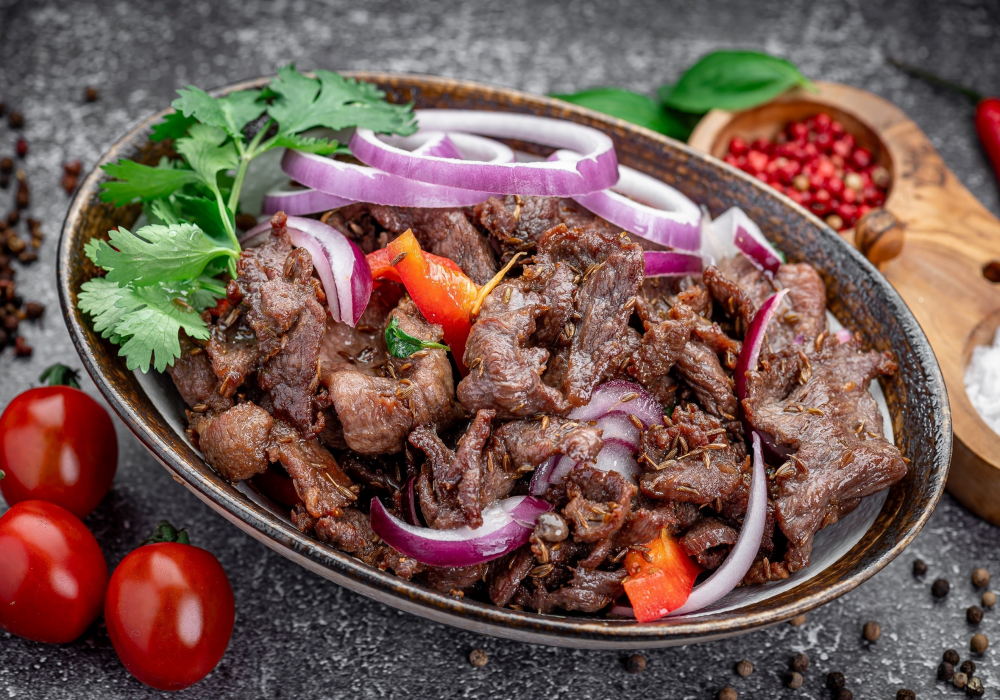 1Stir fried Marinated lamb or beef with cilantro, onion & cumin