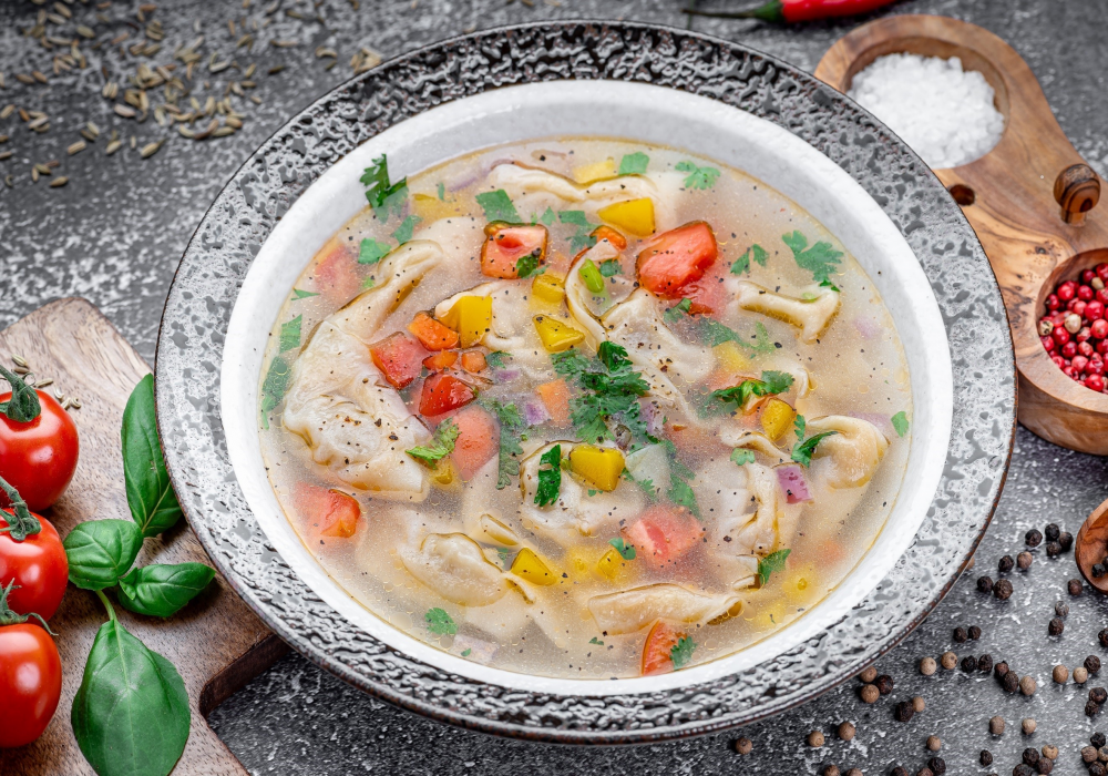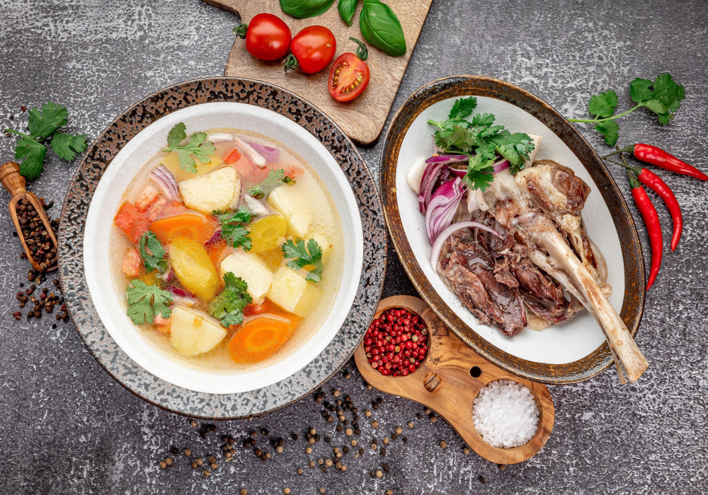 1Lamb stock, meat wantons, onion, red-yellow carrots tomato, garlic, fennel, anise