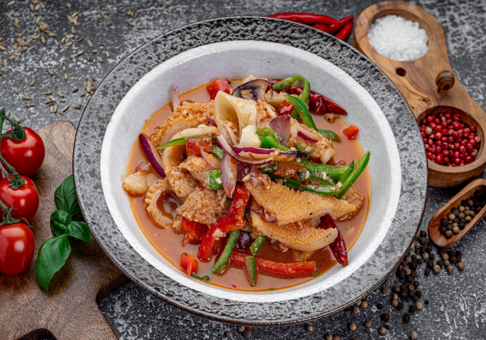 1Beef tripe, red-green pepper, onion, scallion, sesame oil